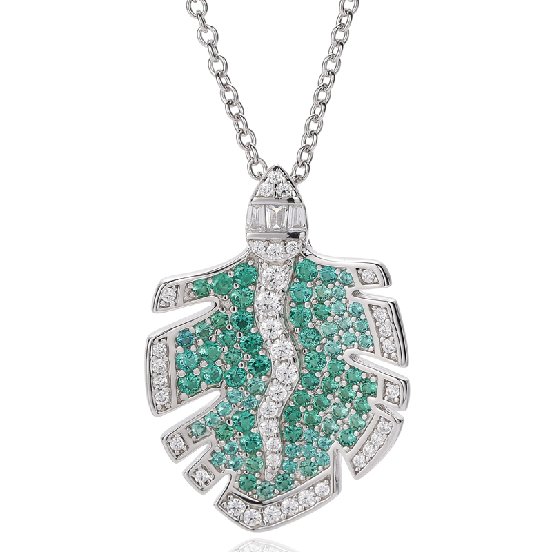 3.71Round Green Nano And Tapered White Cubic Zircon Rhodium Silver Pendant