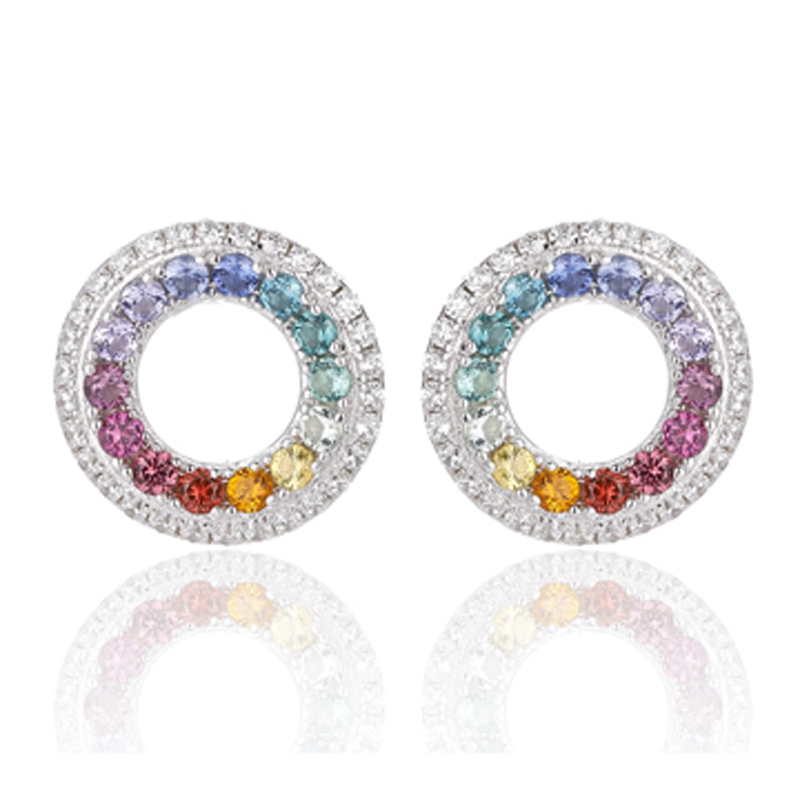 4.54Round Rainbow And White Cubic Zircon Rhodium Silver Earring