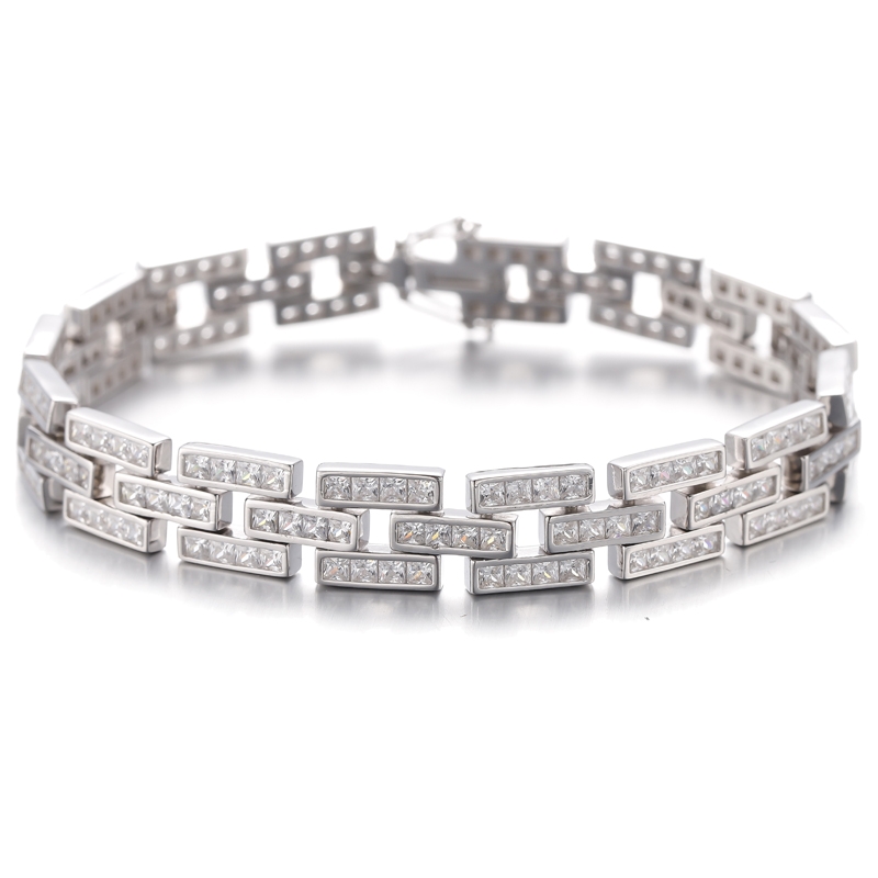 23.47Square Rainbow Cubic Zircon Rhodium Silver Bracelet